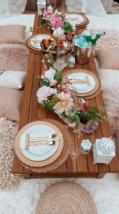 2 1/2 FT Tall x 6 FT Wide -Wood finish -Seats up to 8 people per table